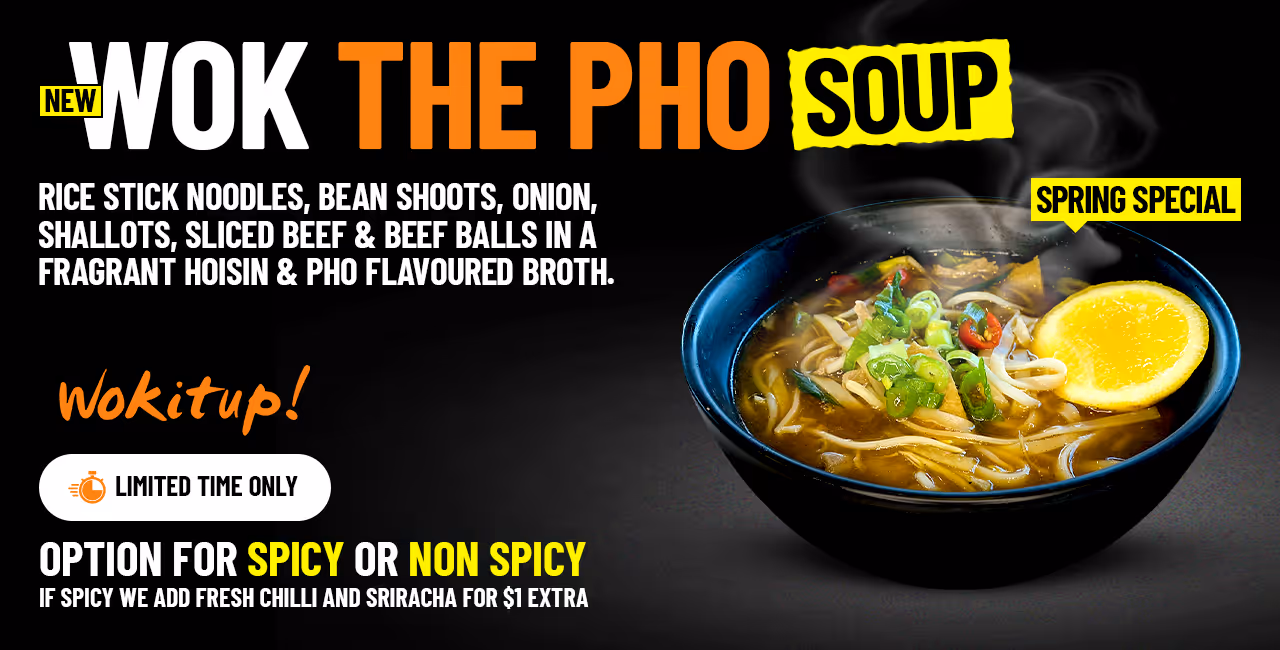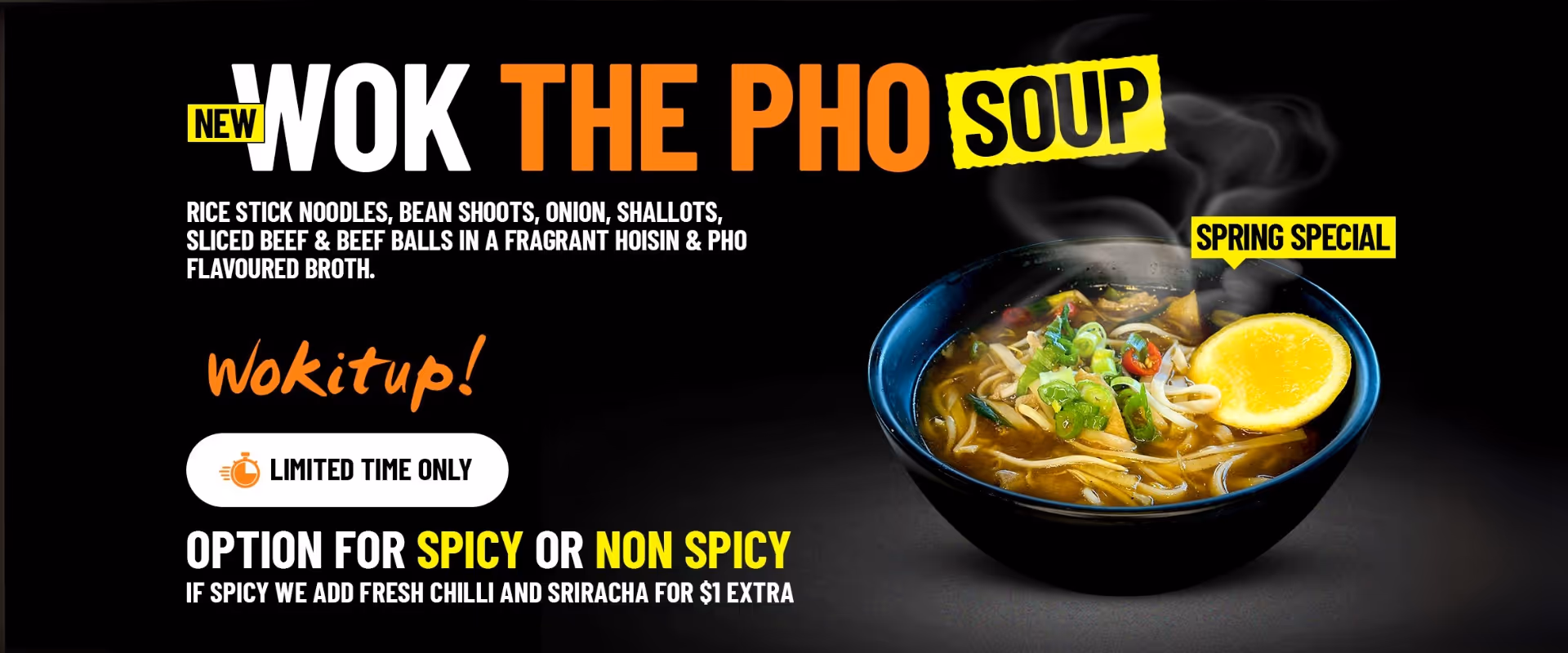 Fresh, fast, and full of flavour! Wokitup’s Noodle Bar is where sizzling stir-fries meet bold Asian street-style vibes. Build your own perfect noodle box with your choice of noodles, protein, veggies, and signature sauces cooked to order. A whole of yum in every bite. It's Wokkin' Good!